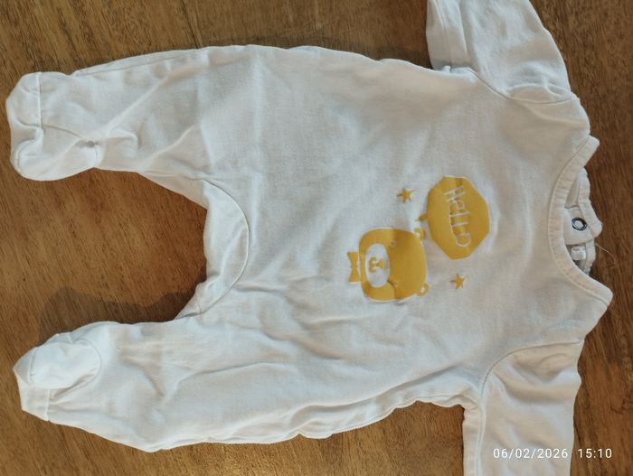 Naissance Deux pièces Un blanc motifs jaunes Un bleu turquoise motif voiture Pas eu le temps de les porter Orchestra