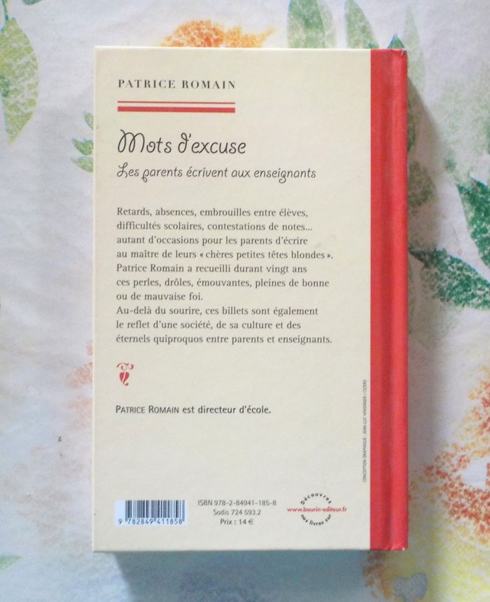 MOTS D'EXCUSE Les parents écrivent aux enseignants par Patrice ROMAIN Ed. François Bourin Très bon état Résumé en photo n°2