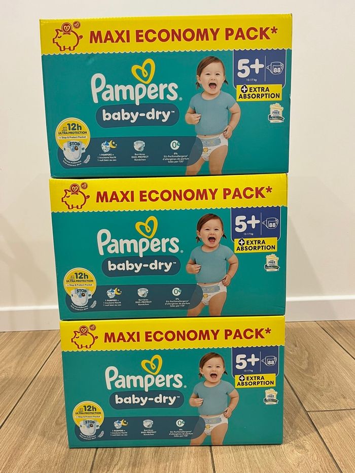 Lot de 3 paquets de couches Pampers taille 5 + Extra absorption 88x3=264 couches 12-17kg