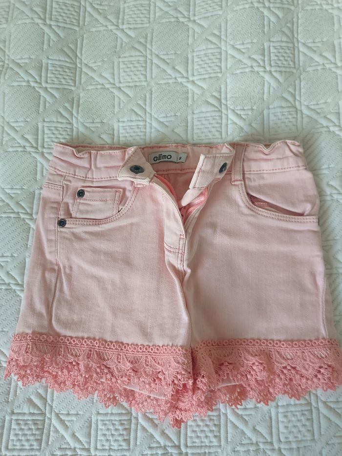 Lot comprenant (Taille 8 ans) : * 1 short en jean bleu avec dentelle (3€) * 1 short en jean rose avec dentelle (3 €) * 1 short rayé en tissu (1€)