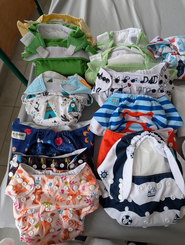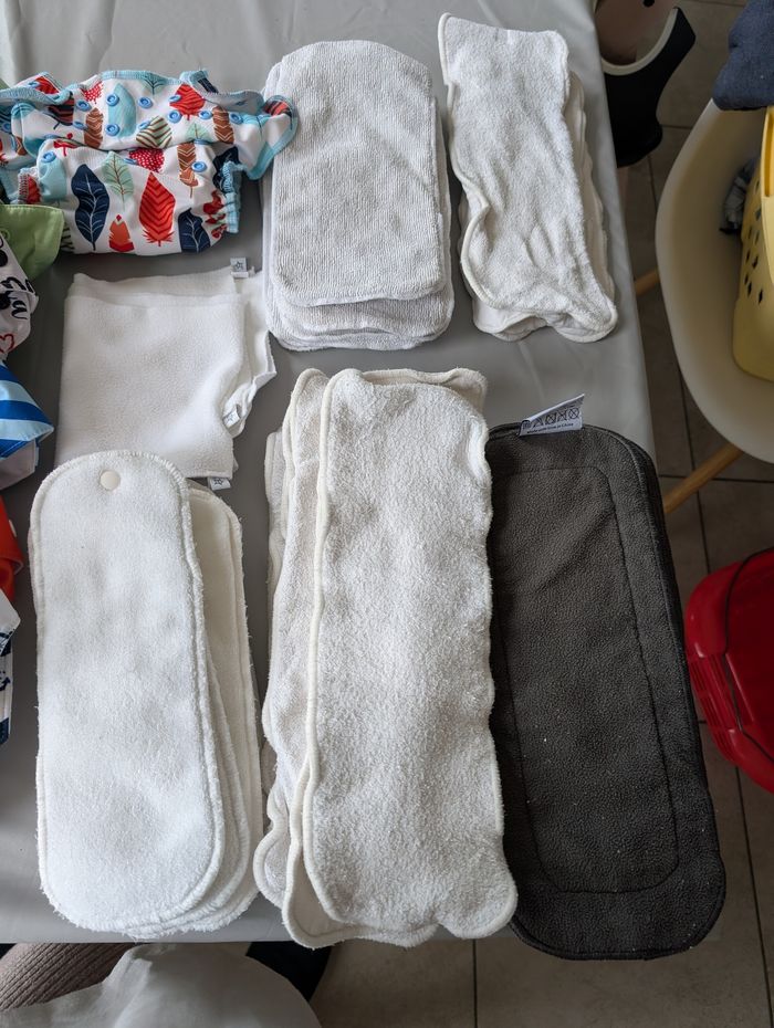 Couches lavables TE1 : - 16 bumgenuis te1 - 4 alva baby te1 - 4 mumbest te1 Tout en un ( insert cousu dans la couche) - 9 bumgenius - 4 Happy flûte ( dont 2 avec insert supplémentaire) - 4 couches sans marques Couches lavables TE2: - 3 happy flûte + insert Total de 40 couches. INSERT - 16 grands insert microfibre - 9 grand insert bambou - 10 grand insert chanvre - 12 petit insert bambou - 18 petit insert microfibre - 4 couches premier âge - 1 couche de bain Toujours entretenu lessive spécial couche lavable cycle rinçage et lavage a 40°. Décrassage tous les trois mois comme recommandé. Les couches sont en bon état. Décrasser et laver avant la vente. N'hésitez pas pour toute question