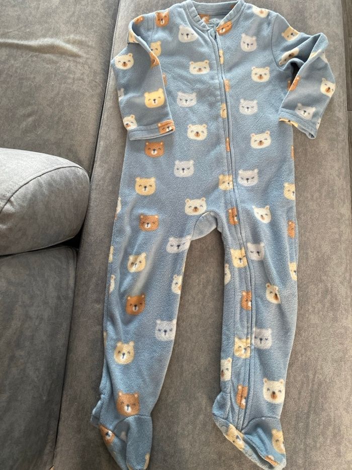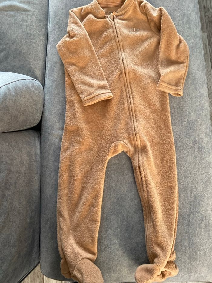 Lot de pyjamas imprimé et marron , avec une grande fermeture éclair, taille 36mois, de chez Kiabi