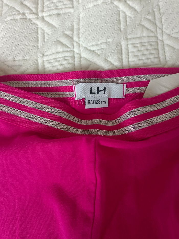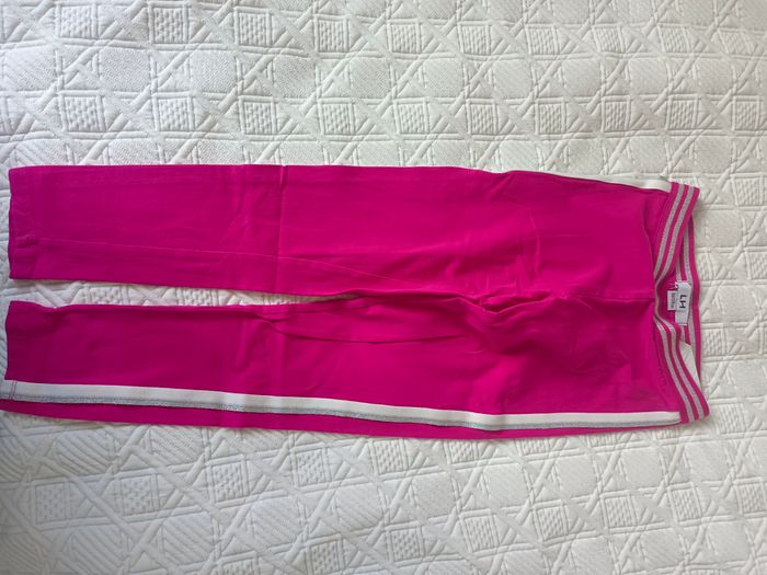 Lot de 2 pantalons La Halle (taille 8 ans) : * 1 jegging bleu (2€) * 1 legging rose avec bordure pailleté (1€)