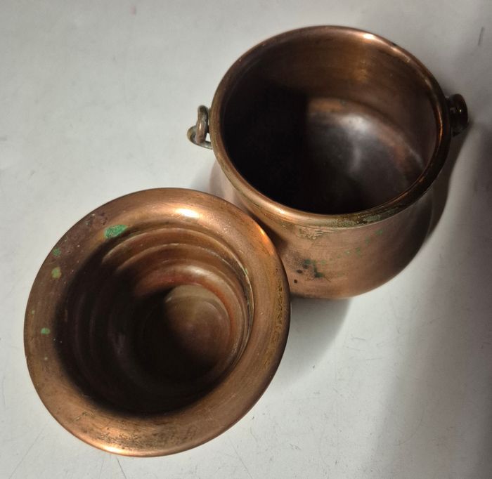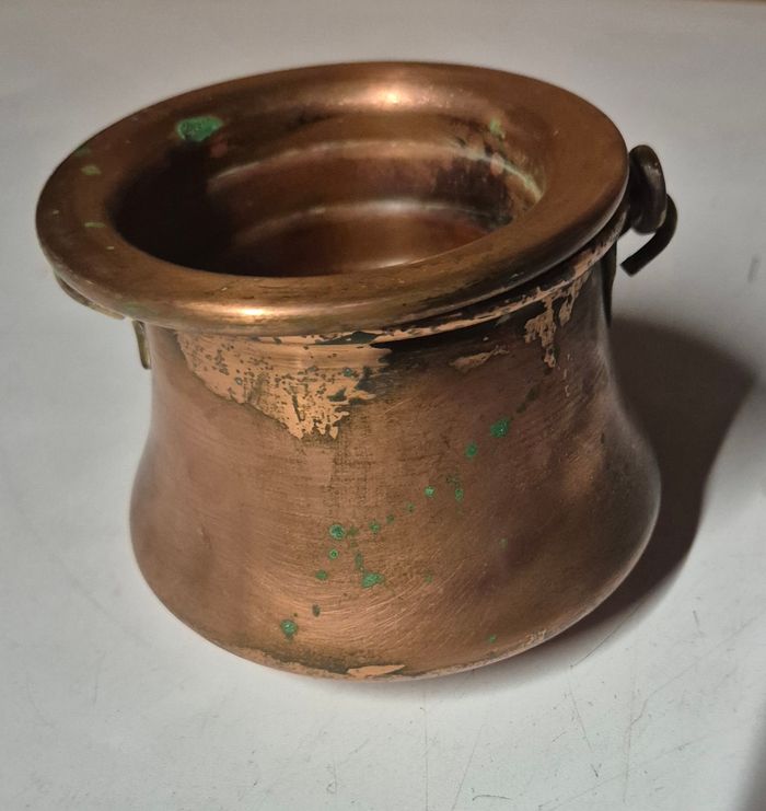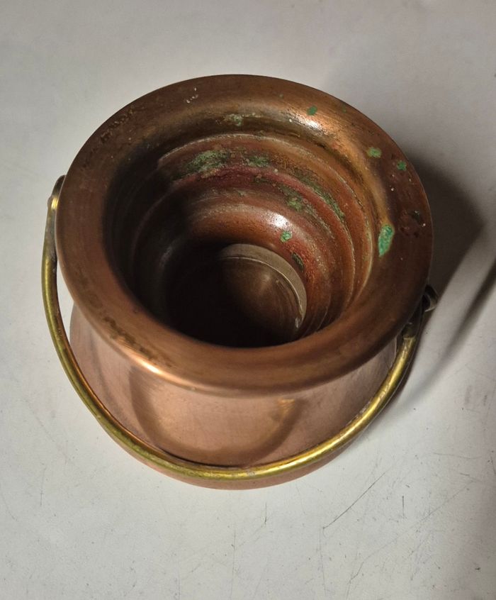 mini chaudron cuivre villedieu france 8,5cm anse laiton vintage déco - photo numéro 5