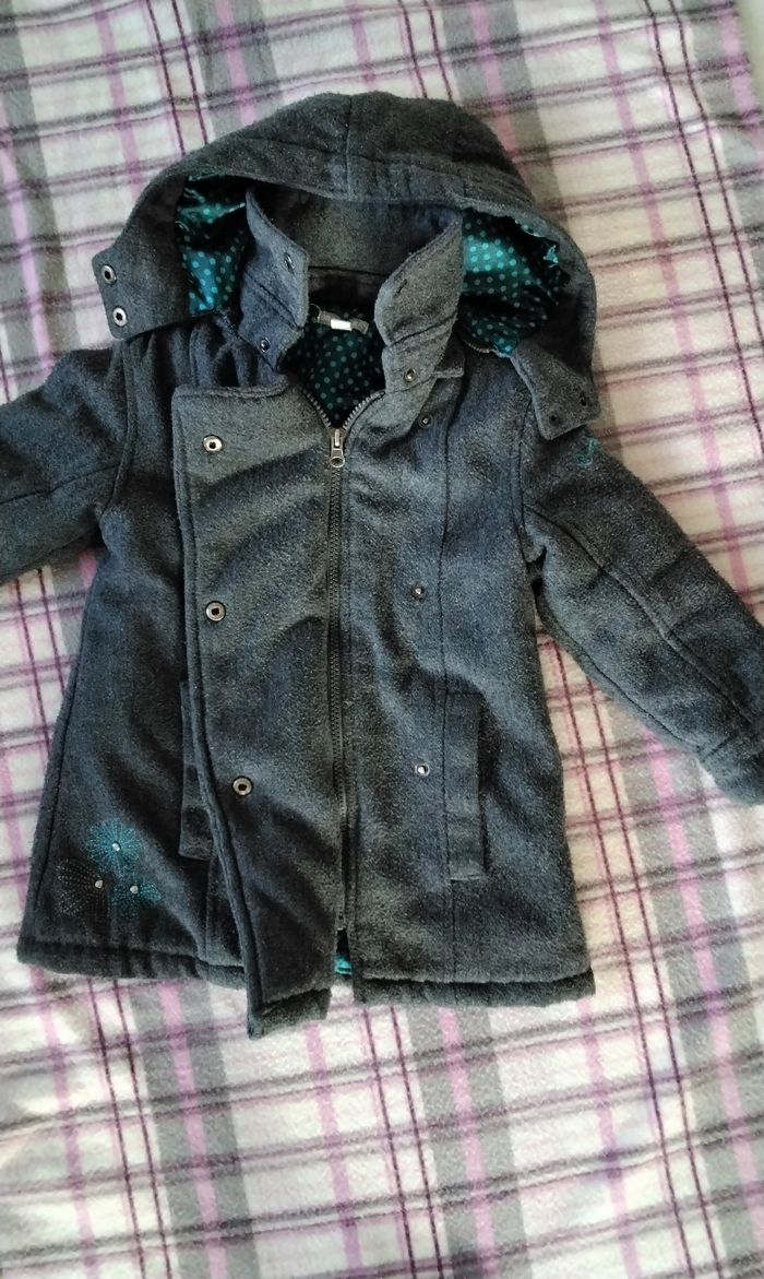 Blouson à capuche amovible, gris ,poches ,fermeture et pressions ,Orchestra ,5 ans 110 cm