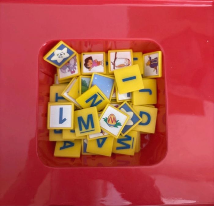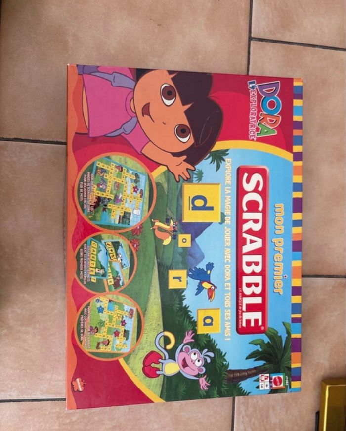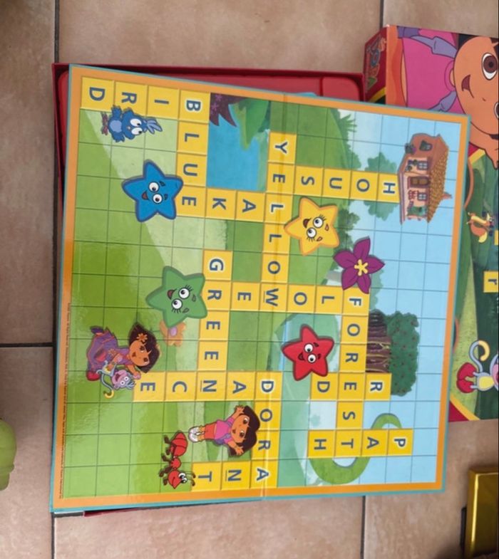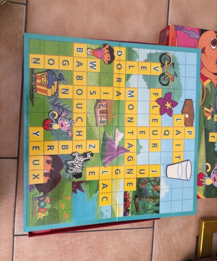 Scrabble dora, ma sœur n’a jamais joué avec le jeu neuf, elle m’a juste perdu les règles du jeu elle comporte 16 carte avec 8 cartes de niveau 1 et 2 Et 62 pièce lettres
