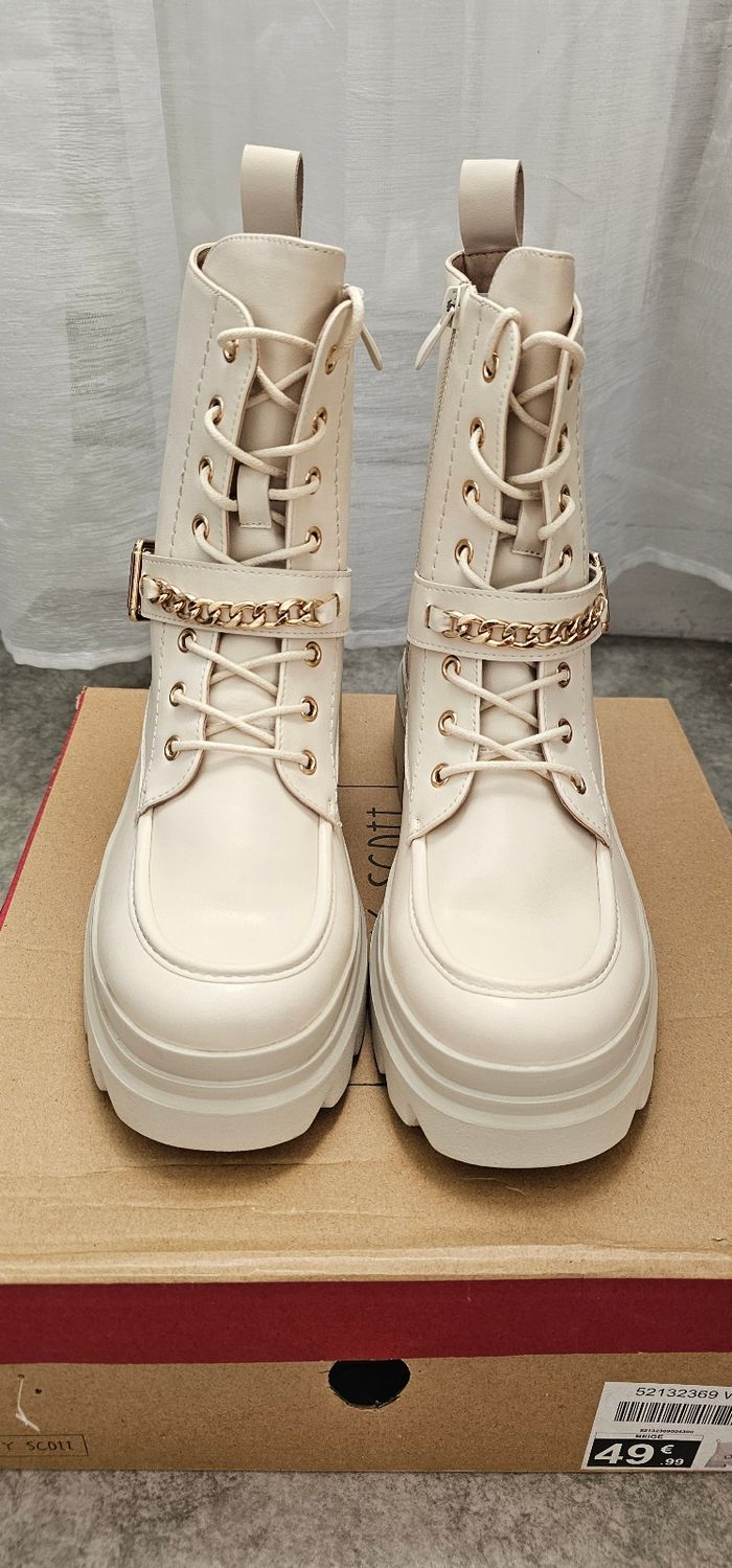 Bottines beige à plateforme avec chaîne dorée – Neuves – Taille 39 - photo numéro 2