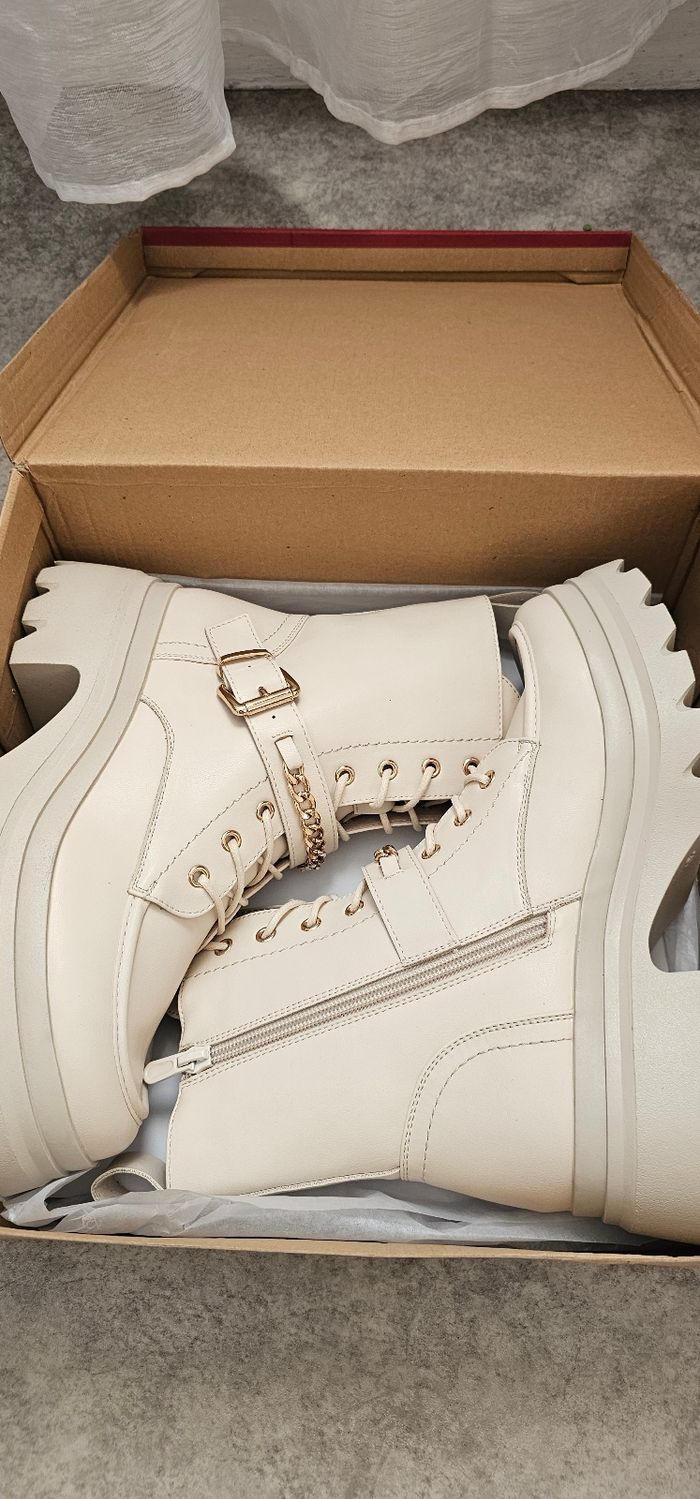 Bottines beige à plateforme avec chaîne dorée – Neuves – Taille 39 - photo numéro 6