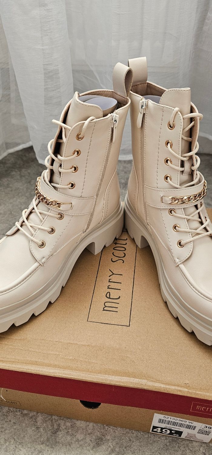 Bottines beige à plateforme avec chaîne dorée – Neuves – Taille 39 - photo numéro 3