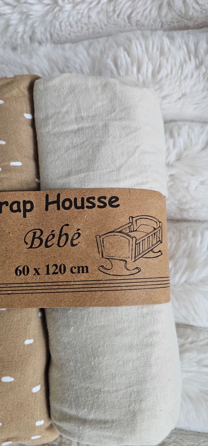 Lot de 2 draps housses 100% coton 60×120cm Neufd - photo numéro 1