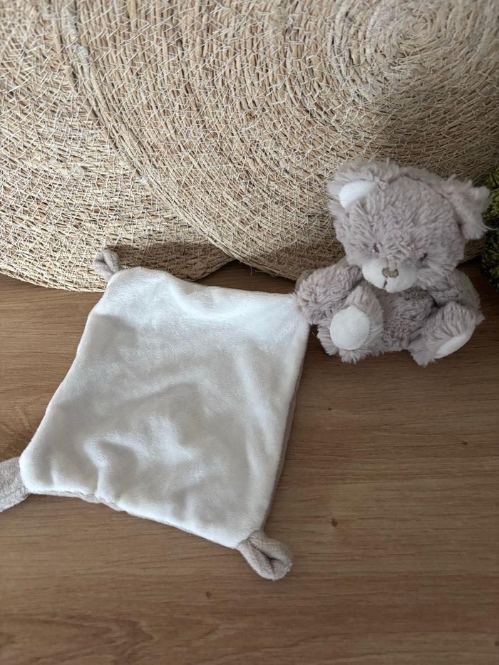 Excellent état Envoi rapide #doudouoursmouchoirtexbabycarrefour #doudouoursgrisblancmouchoirtexcarrefour