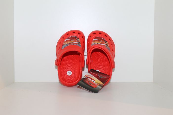 sabots cars disney rouge double pointure 22/23 neufs avec étiquettes,idéal plage dehors jardin ou en chaussons à la maison. votre enfant sera heureux de se promener avec son bolide préféré flash mc queen. réf 2570 n'hésitez pas à faire un lot. #sabots #crocs #disney #flash mc queen #cars
