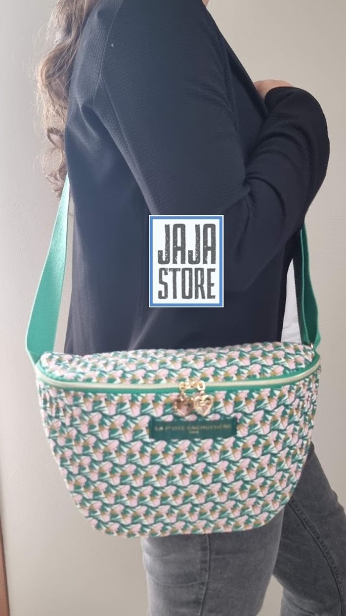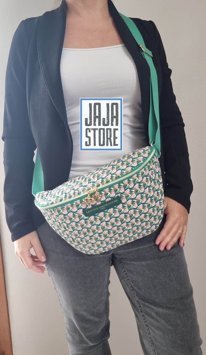 Sac banane liberty imprimé vert et rose - photo numéro 1