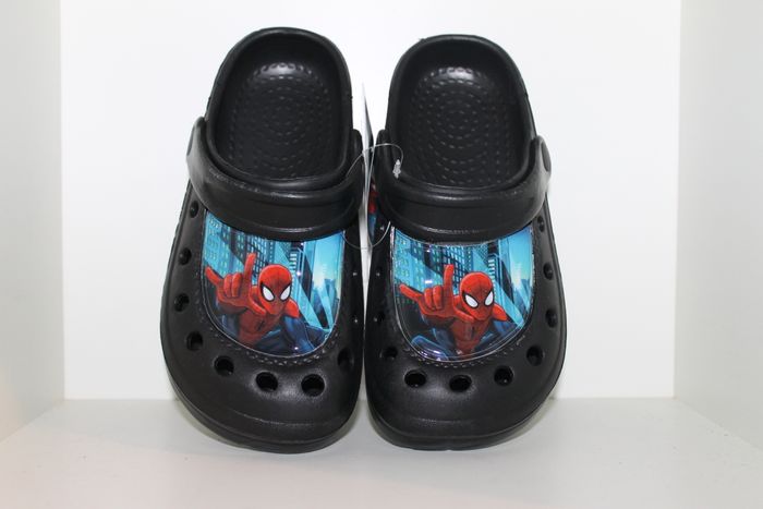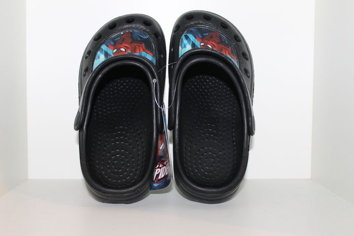 sabots spiderman noir pointure 33/34 neufs avec étiquettes,idéal plage dehors jardin ou en chaussons à la maison. votre enfant sera heureux de se promener avec son araignée préférée. réf 1978 n'hésitez pas à faire un lot. #sabots #crocs #marvel #spiderman #araignée