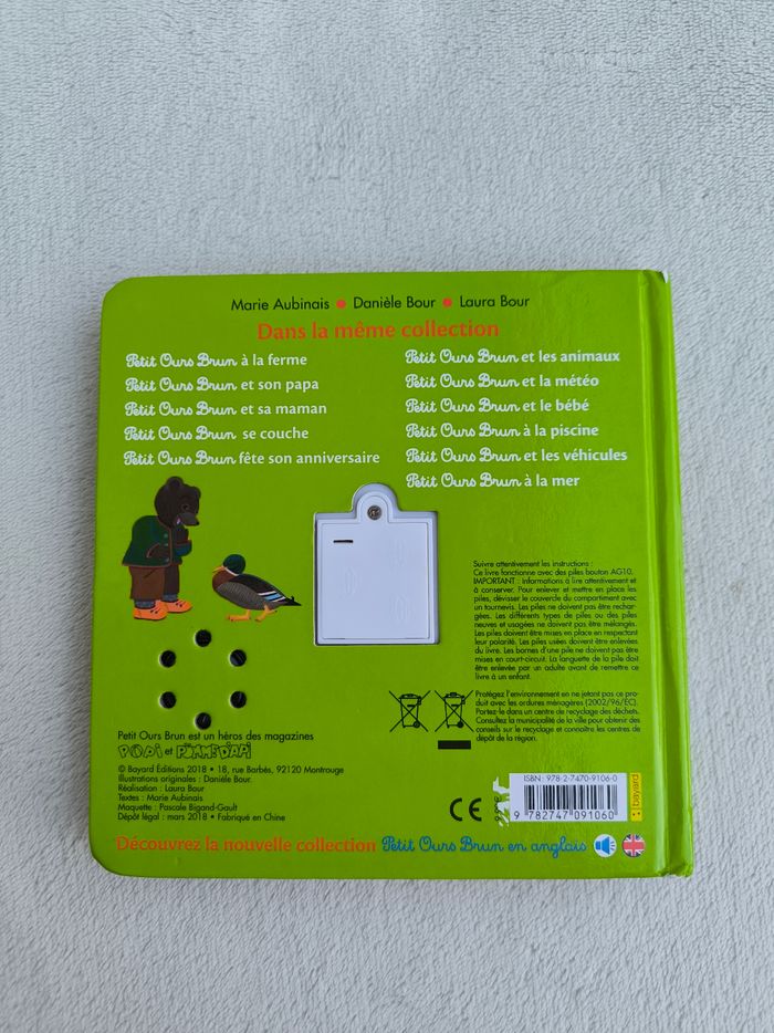 Livre sonore Petit Ours Brun et les oiseaux Éditions Bayard Jeunesse • Pages cartonnées -> Merle, canard colvert, coucou, mouette, chouette • Intérieur du livre en très bon état • Coins légèrement abîmés Fonctionne Piles incluses En très bon état #evelyne_livres