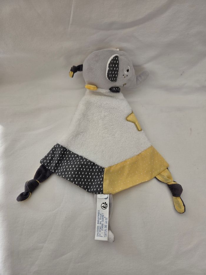 Doudou plat Éléphant blanc , jaune et gris - Sauthon - photo numéro 2