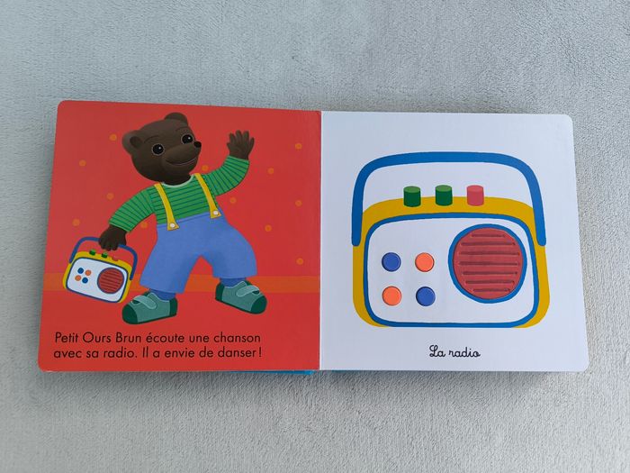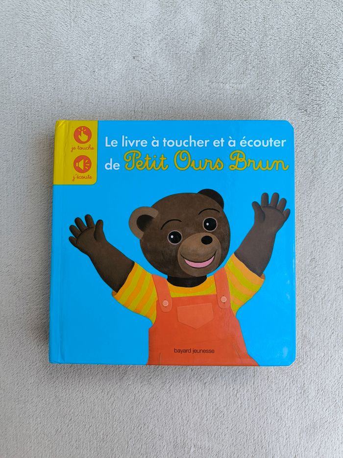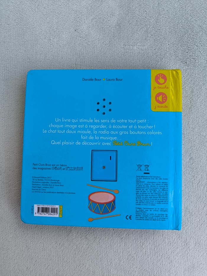 Livre sonore Le livre à toucher et à écouter de Petit Ours Brun Éditions Bayard Jeunesse • Pages cartonnées • Matières à toucher -> Chat, camion de pompiers, radio, chien, tambour • Intérieur du livre en très bon état • Aucun son pour le camion de pompiers Fonctionne Piles non incluses En très bon état #evelyne_livres
