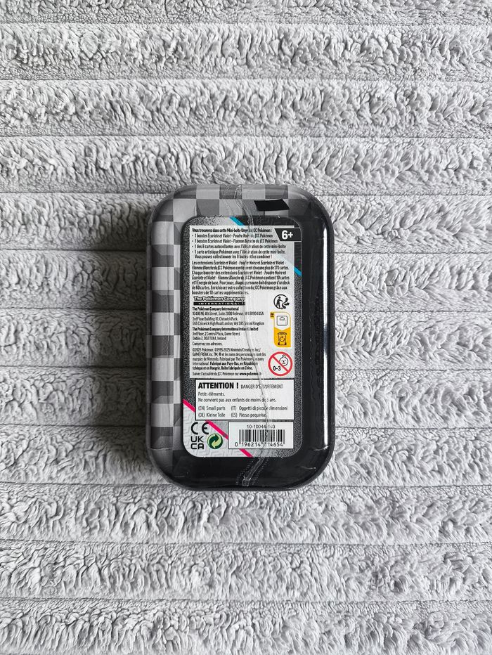 Découvrez la Mini Tin EV10.5 PYRAX, collector compact de l'extension Pokémon Écarlate & Violet – Foudre Noire & Flamme Blanche, hommage à la région d'Unys ! Édition française officielle, sortie juillet 2025. Contenu précis : 1 booster Foudre Noire. 1 booster Flamme Blanche.