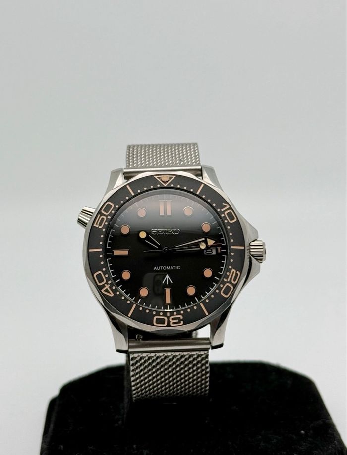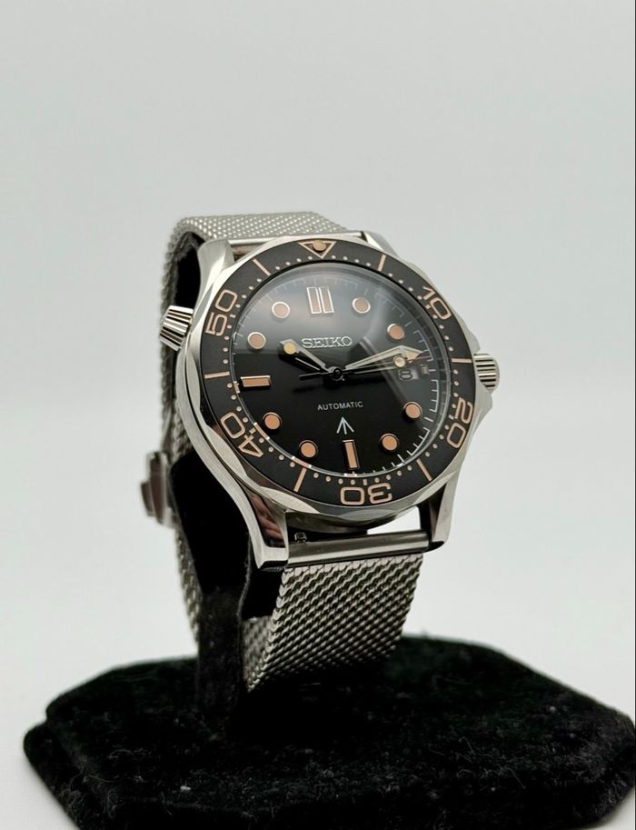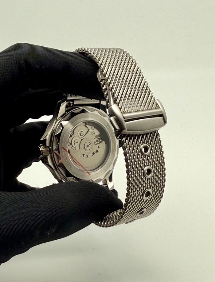 🛠️ CARACTÉRISTIQUES TECHNIQUES • Mouvement : Automatique Seiko NH35 officiel (fiabilité extrême, stop-seconde, remontage manuel et automatique). • Boîtier : Acier inoxydable 316L haute qualité, finition brossée et polie. • Cadran : Noir mat avec index "vintage • Lunette : Lunette tournante unidirectionnelle avec insert en céramique ou aluminium mat (finition haut de gamme). • Verre : Verre bombée (effet vintage) pour une superbe profondeur visuelle. • Bracelet : Maille milanaise (Mesh) en acier inoxydable, robuste et ultra confortable. • Fond de boîte : Transparent (Exhibition Caseback) laissant apparaître le mécanisme en mouvement. ✨ ÉTAT & ACCESSOIRES • État : Neuf, jamais porté. • Accessoires : Livré avec sa boîte de transport de protection.