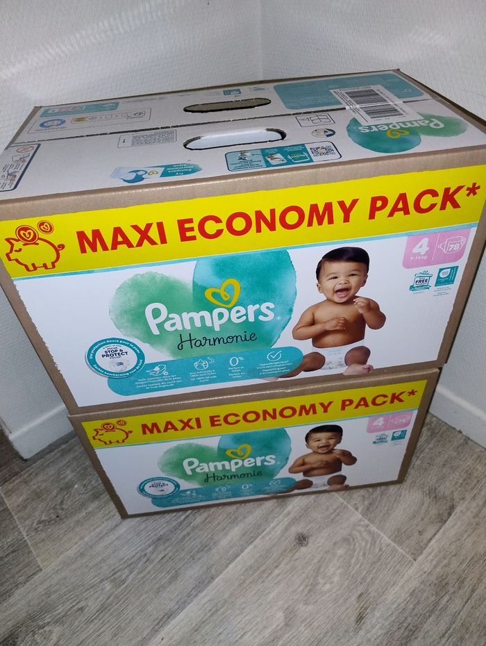 Bonjour, Lot de deux cartons neufs en maxi économy pack de couches Pampers harmonie taille 4. Prix ferme. Envoi via mondial relais pour avoir les FDP au minimum. Surtout ne pas choisir de locker (casier) car le colis est trop gros pour entrer.