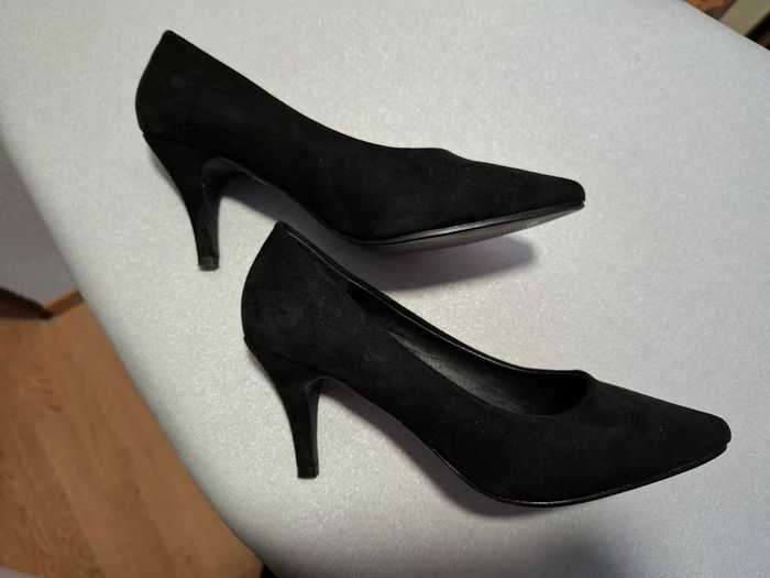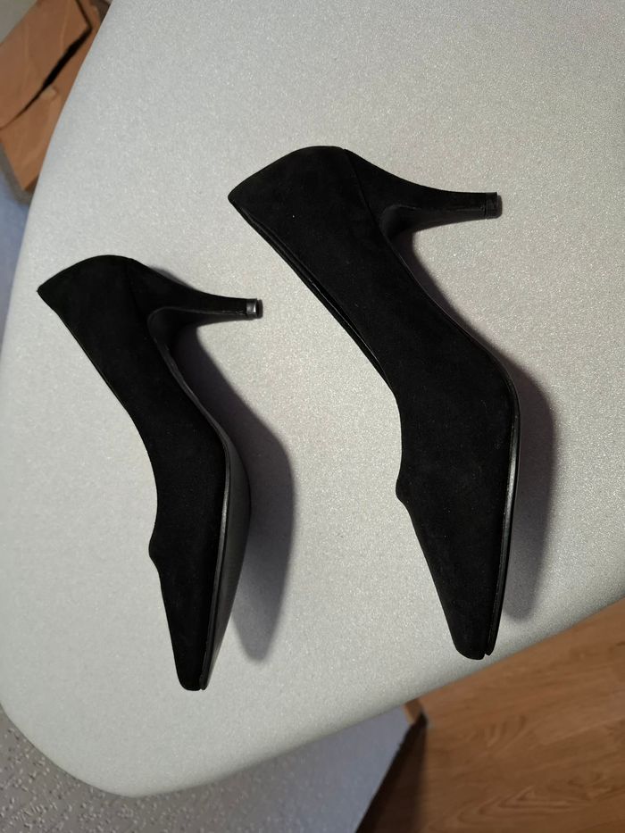 Jolis escarpins femme daim noir à talons 37 La Halle comme neufs - photo numéro 1