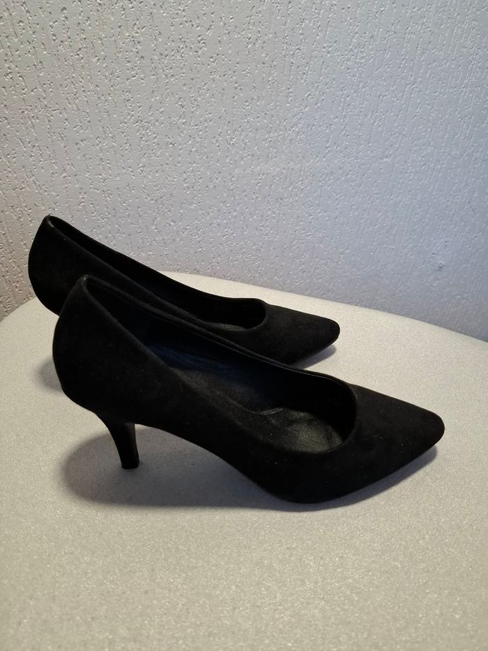 Jolis escarpins femme daim noir à talons 37 La Halle comme neufs - photo numéro 4