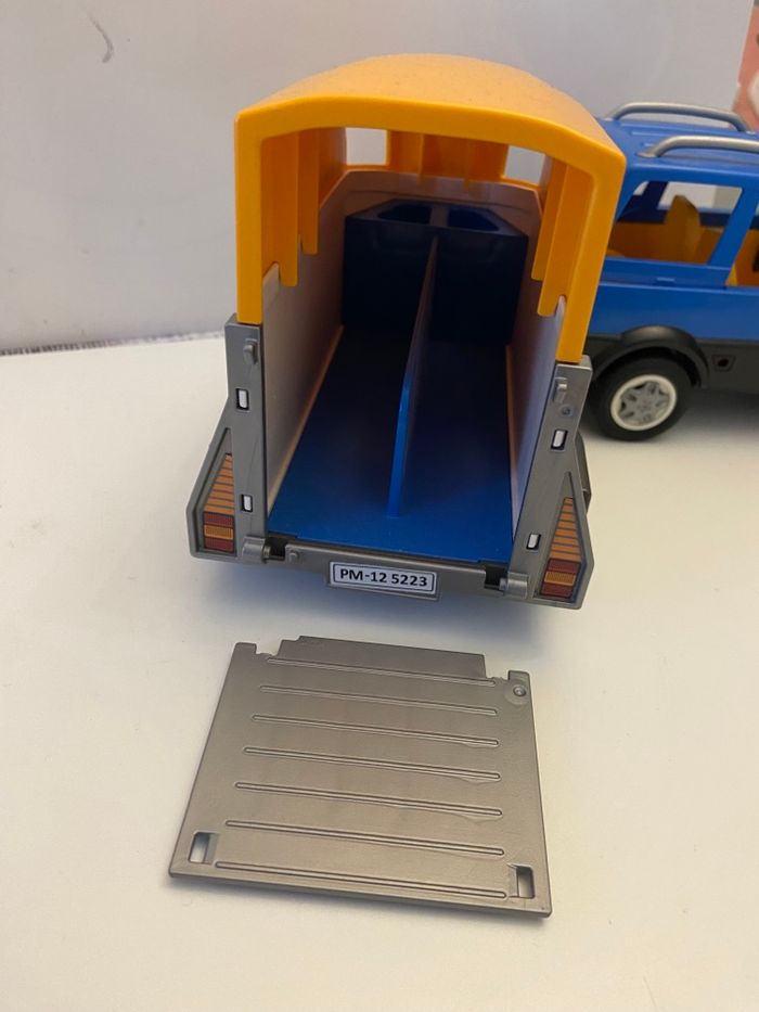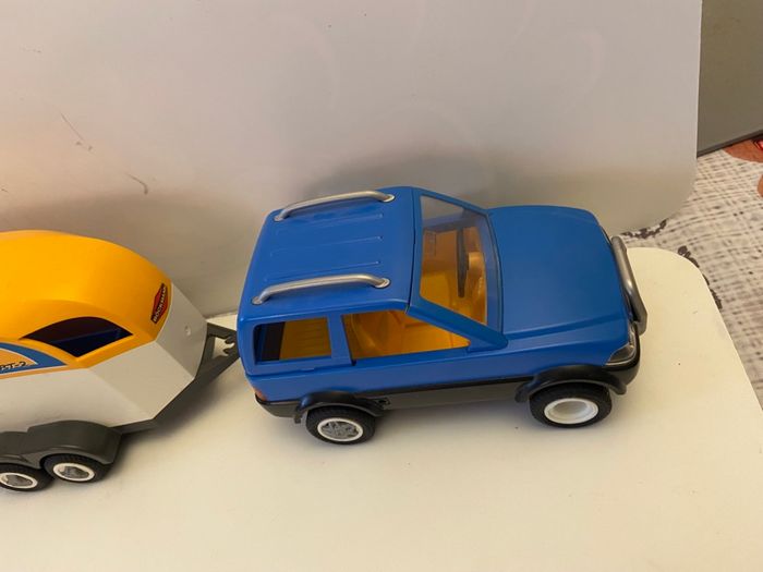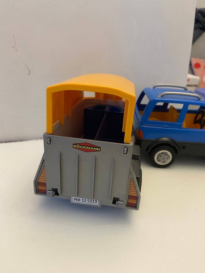 Voiture bleu avec remorque cheval chevaux Idéal pour jouer avec des playmobil animaux ferme véhicules camion vétérinaire