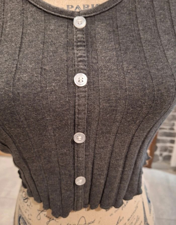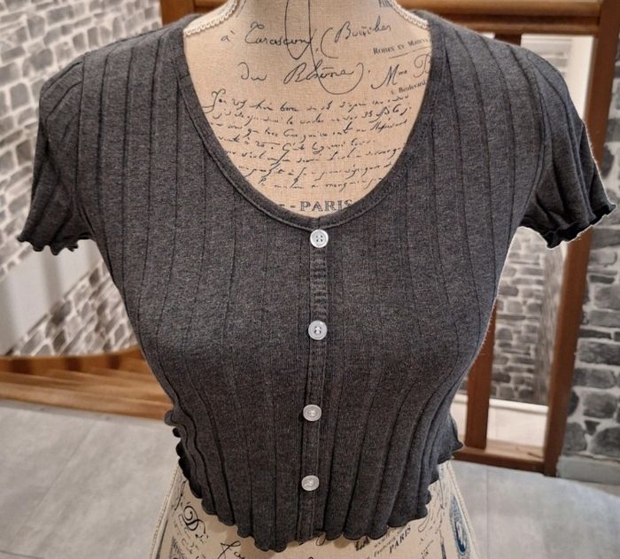Tee-shirt grus court à fausse boutonnière - photo numéro 4