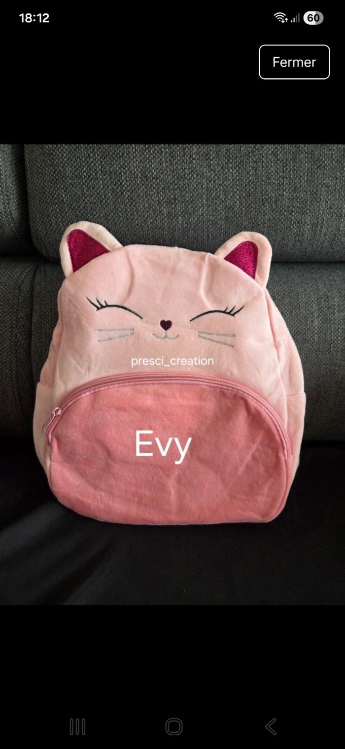 Sacs enfants chat moustaches rose Personnalisable avec le prénom Me.contactez