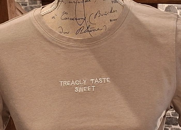 Tee-shirt court beige brodé blanc - photo numéro 2