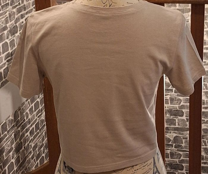 Tee-shirt court beige brodé blanc - photo numéro 3