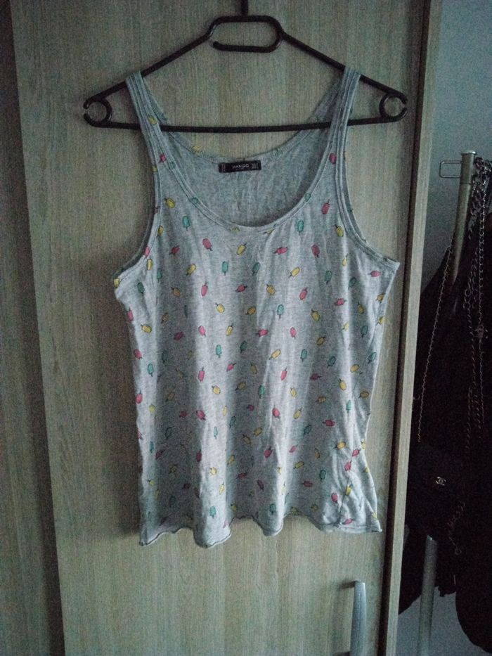 Jolie débardeur couleur gris avec de beaux motifs glaces porté 1 ou 2 fois donc comme neuf parfait avec un short ou un jean.