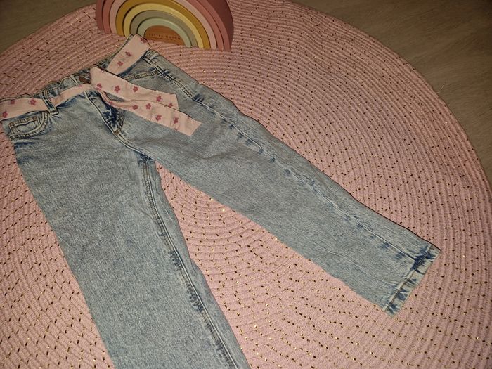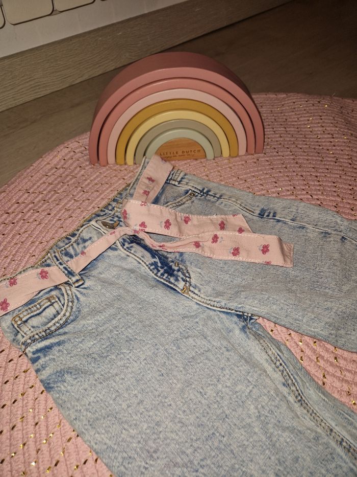 Vends ce joli jean en denim clair (effet acid wash) pour petite fille. Il est accompagné de sa ceinture en tissu rose amovible, ornée de délicats motifs fleuris, qui apporte une touche bohème et printanière à la tenue. ​Détails : Coupe droite, passants pour ceinture, poches fonctionnelles. ​État : Très bon état, peu porté. Le denim est souple et confortable pour l'enfant. ​Style : Parfait pour l'école ou les sorties, se marie très bien avec un petit pull blanc ou un t-shirt rose. Taille 4-5 ans 110cm ​#️⃣ Hashtags #annPaolofille4ans #annPaolofille5ans ​#jeanfille #denimkids #modeenfant #jeanclair #bohochic #vêtementsenfant #littlelook #printemps #ceinturefleurie #styleenfant