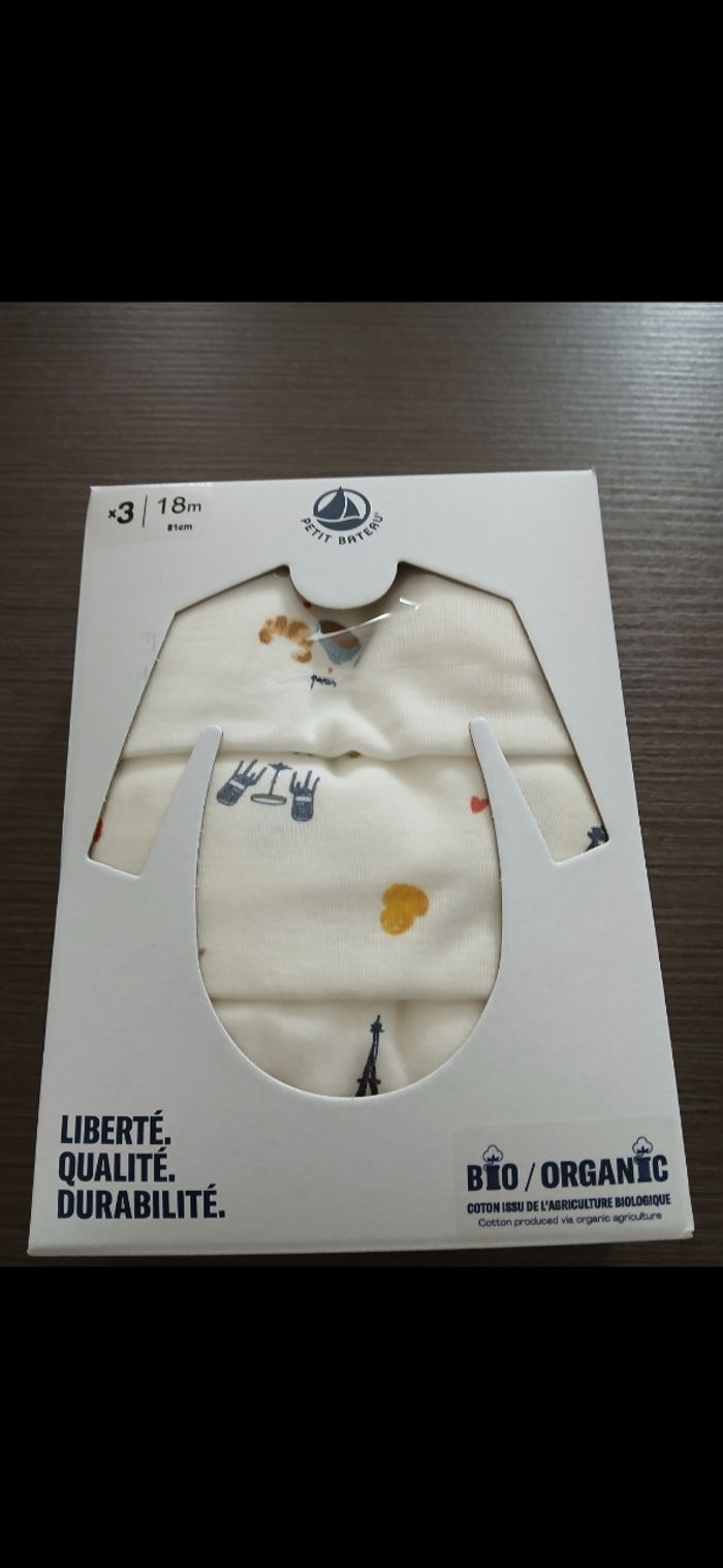 Lot de trois bodies garçon monuments de Paris petit bateau 18 mois - photo numéro 2
