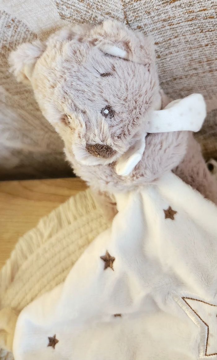 Doudou Lange Ours Pommette Gris clair blanc Neuf neuf gardé pour une collection donc dans une vitrine.. Lavée avant la vente avec une lessive hypoallergénique et sensitive 🧼 🧺 Pensez au lot pour des Réductions ☘️ #DoudouBébéMadyMily