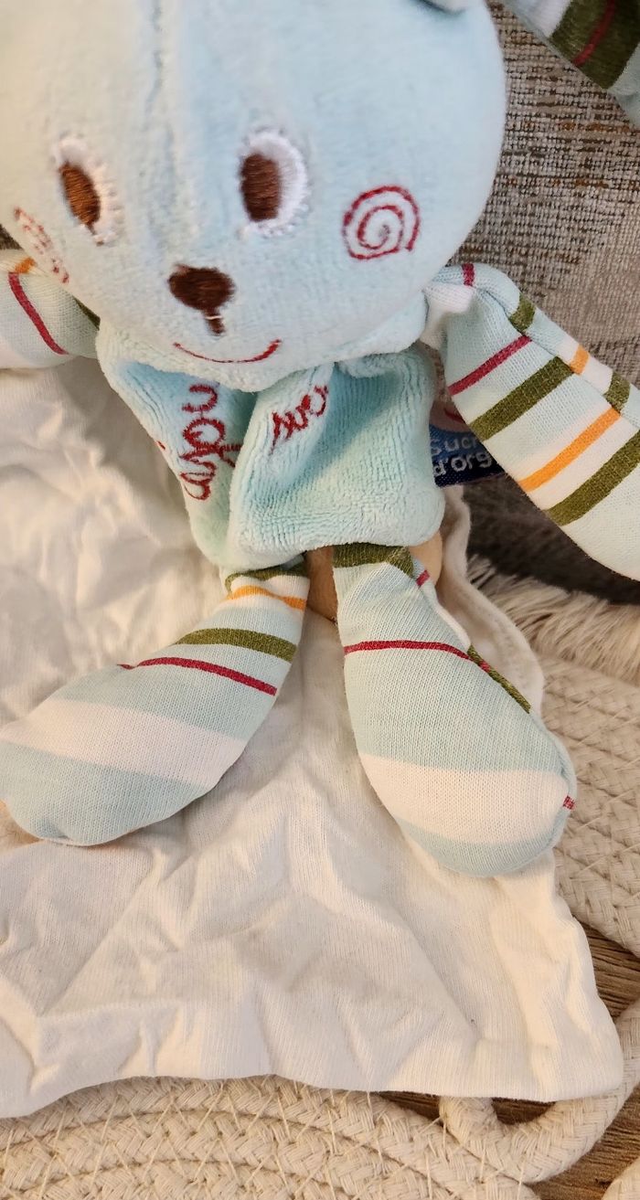 Doudou Lange Lapin Sucre d'orge Bleu - photo numéro 10