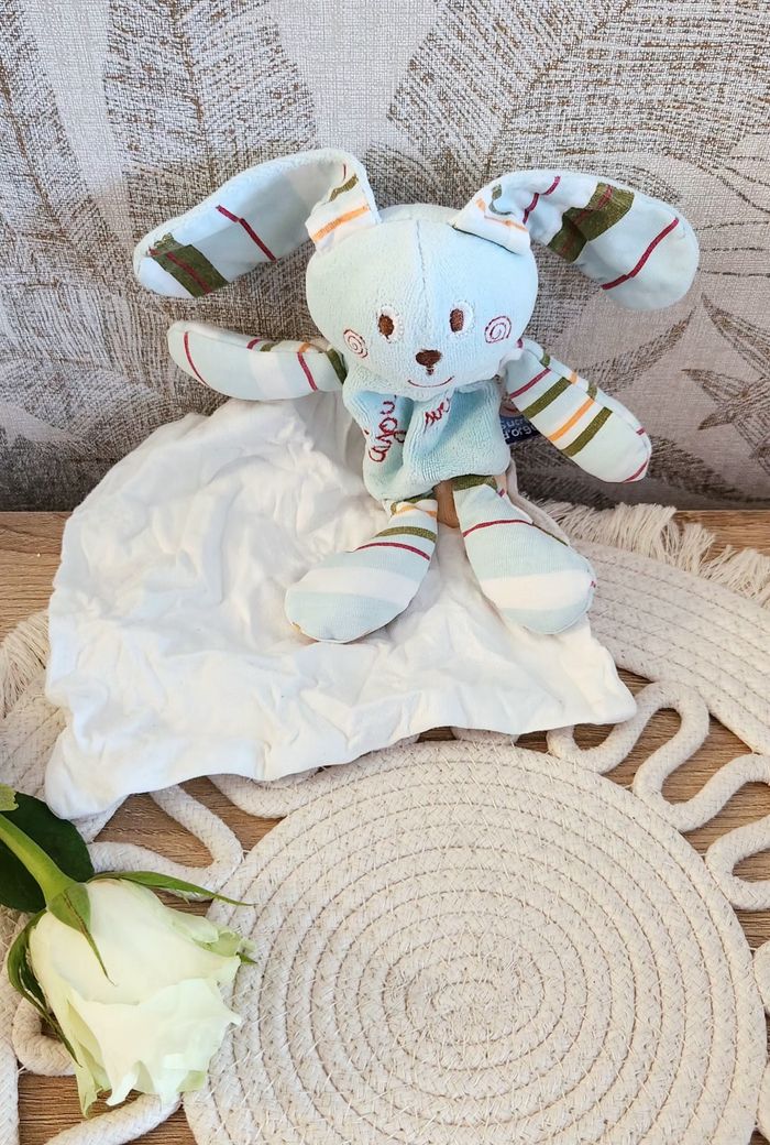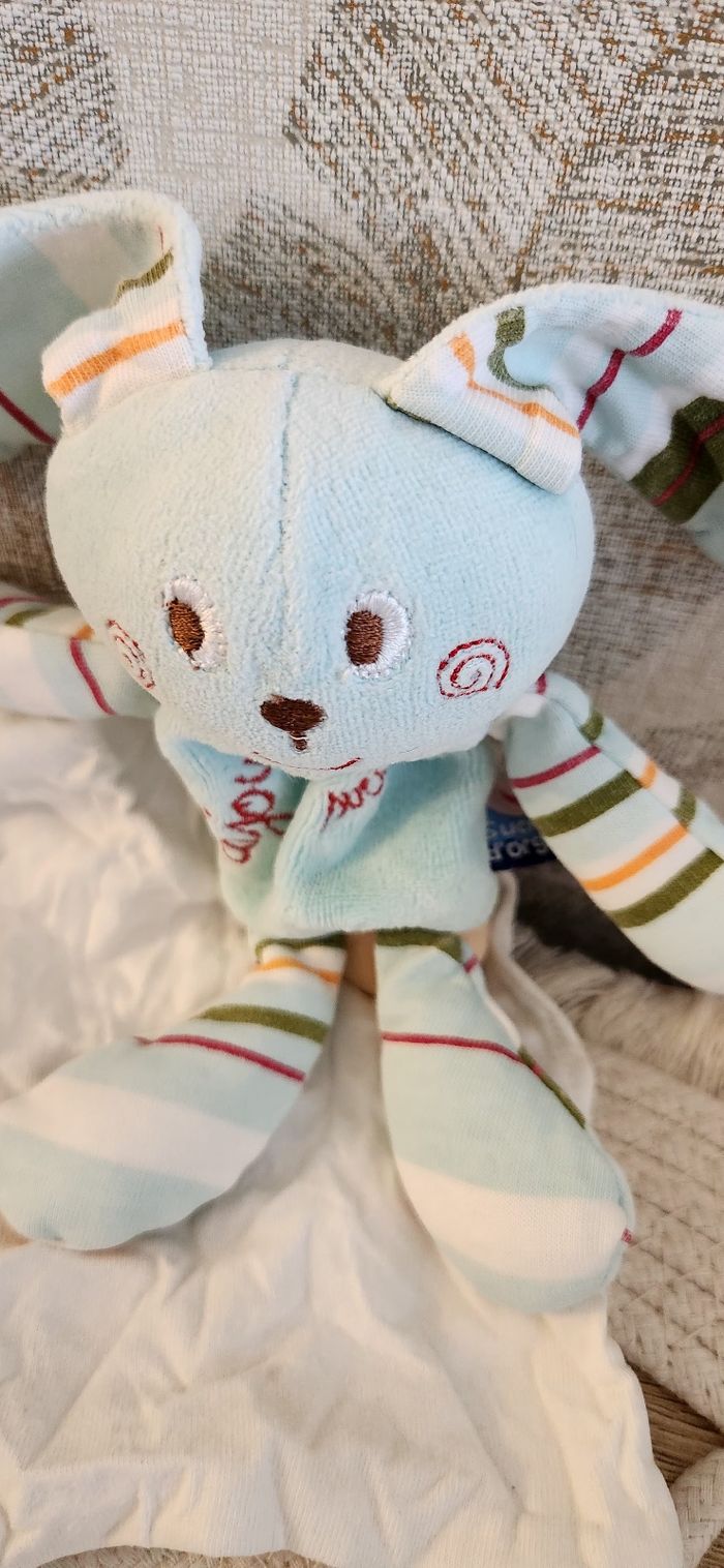 Doudou Lange Lapin Sucre d'orge Bleu - photo numéro 9