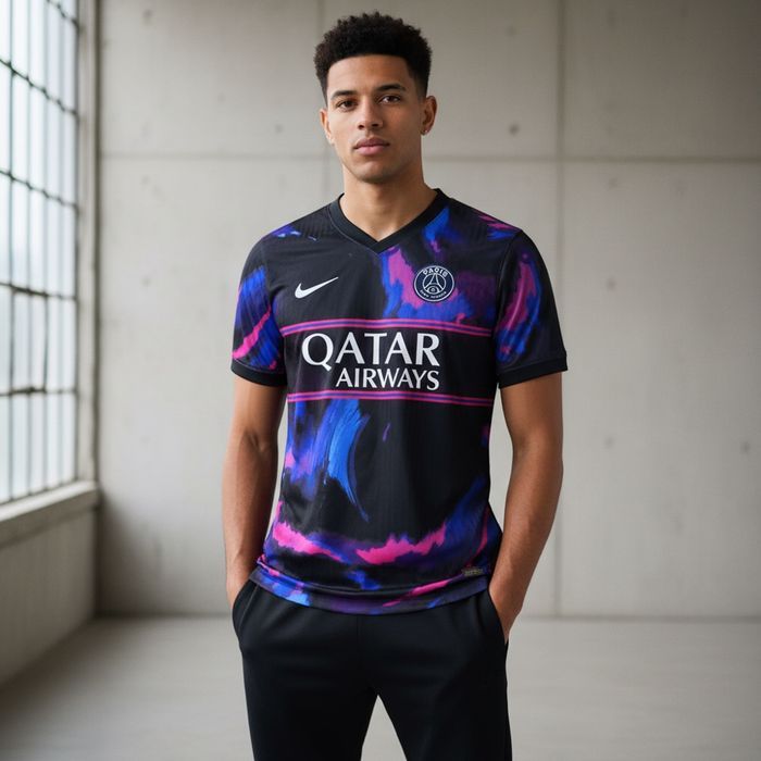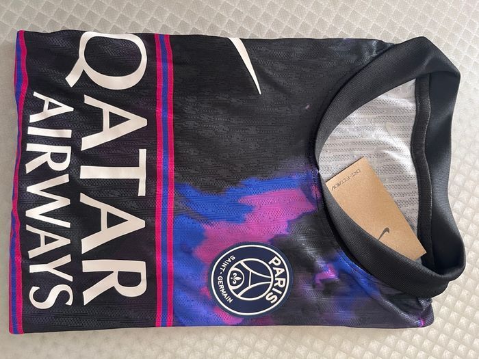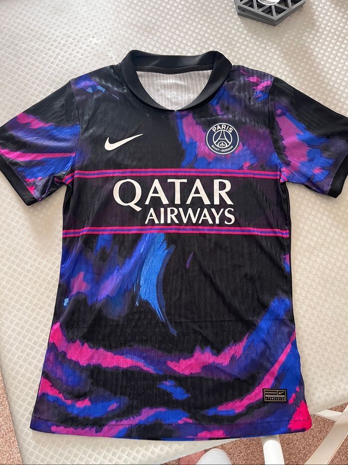 Mettez la main sur ce maillot exclusif du Paris Saint-Germain, saison 2025-2026, modèle "Fourth Kit" signé Nike et Jordan. Un design unique et audacieux qui allie modernité et élégance, parfait pour les fans du club ou les collectionneurs. Caractéristiques : Couleurs : Noir avec motifs dynamiques en bleu et rose, pour un look original et tendance. Logos : Écusson PSG et swoosh Nike , avec sponsor Qatar Airways imprimé. Coupe : Ajustée, mettant en valeur la silhouette tout en offrant une grande liberté de mouvement. Taille S Pourquoi choisir ce maillot ? Un design innovant qui sort des sentiers battus. Parfait pour afficher votre passion lors des matchs ou au quotidien. Prix : 30€ N’hésitez pas à me contacter pour plus d’informations ou photos supplémentaires. Livraison rapide