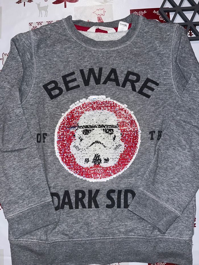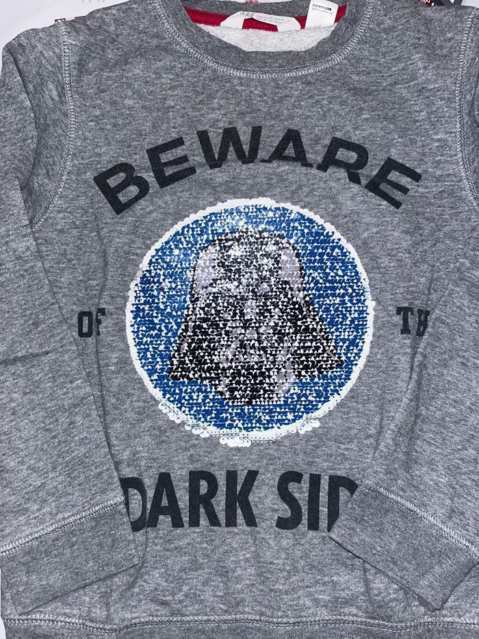 À vendre : Pull Star Wars H&M - Taille 6/8 ans 🖤✨ • Marque : H&M • Thème : Star Wars 🌌 • Taille : 6/8 ans • Détails : Double motif pour un design unique 🪐 • État : Très bon état, prêt à être porté par un jeune Jedi 🌟 💰 Prix : 3 € 📦 Livraison : Envoi rapide et soigné (frais de port en supplément). Parfait pour les fans de l’univers Star Wars ! 🚀 Contactez-moi pour plus d’infos.