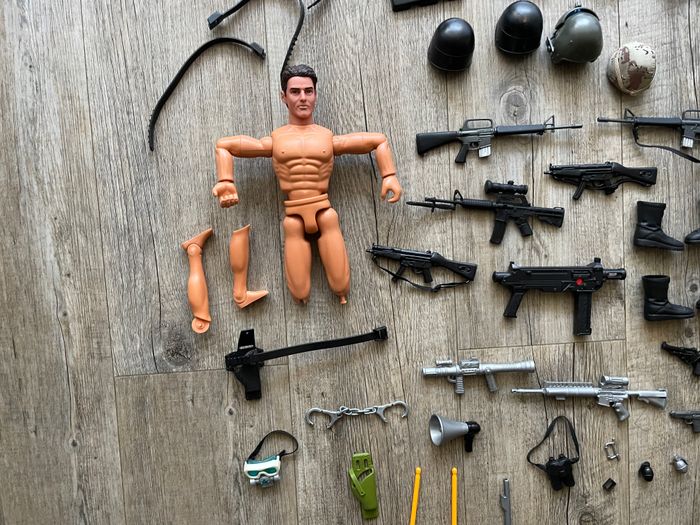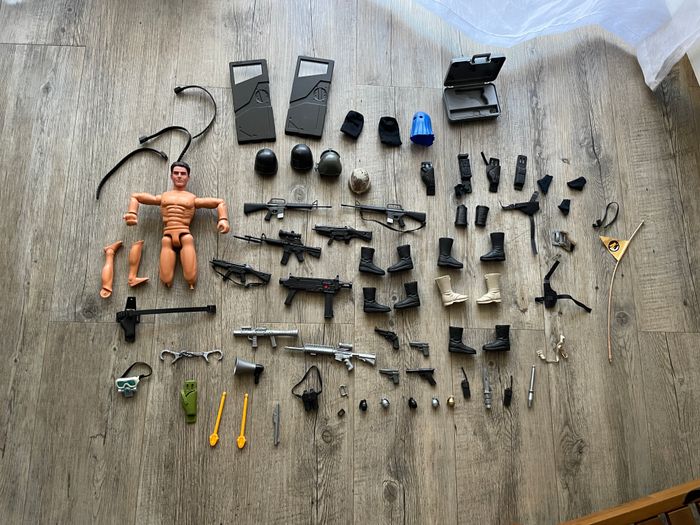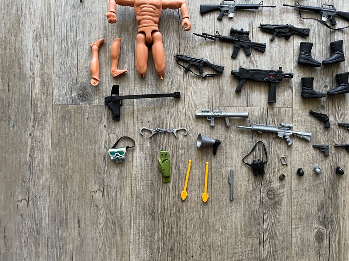 ACTION MAN LOT DE BONHOMMES ET ACCESSOIRES. GROS SAC. CONVIENT POUR LES ENFANTS DE 5 À 11 ANS.