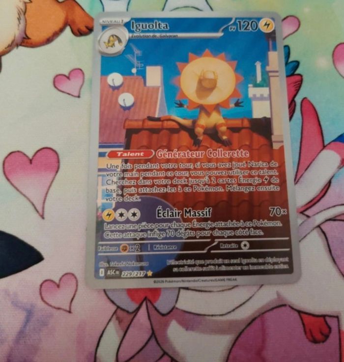 La carte est sortie de booster, puis immédiatement mise sous sleeve et toploader pour une protection optimale. Livraison rapide et soignée : Je m’assure que ta commande arrive dans les meilleurs délais et dans un état parfait. N'hésitez pas a jeter un œil à mes autres annonces, il y a peut-être d'autres cartes qui t'intéresseront !