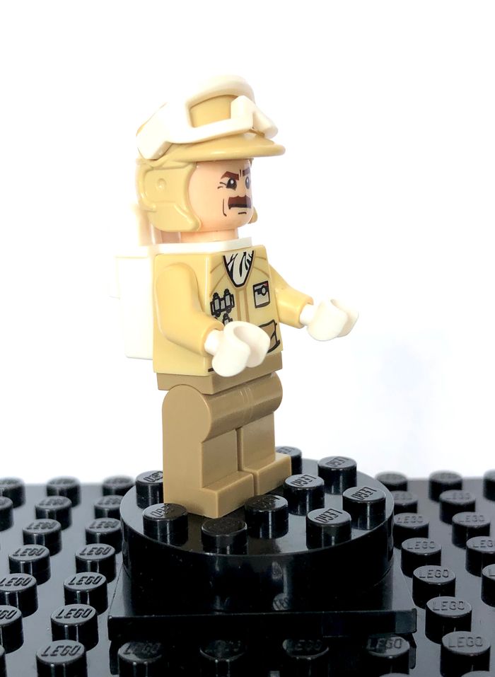 Figurine LEGO Star Wars - Hoth Rebel Trooper, tan uniform Tirée du set 9509 : Calendrier de l'avent 2012 Référence : sw0425 / 9509-13 (hollow stud head version) Complète avec accessoires du set d'origine Comme neuve, jamais jouée, juste exposée