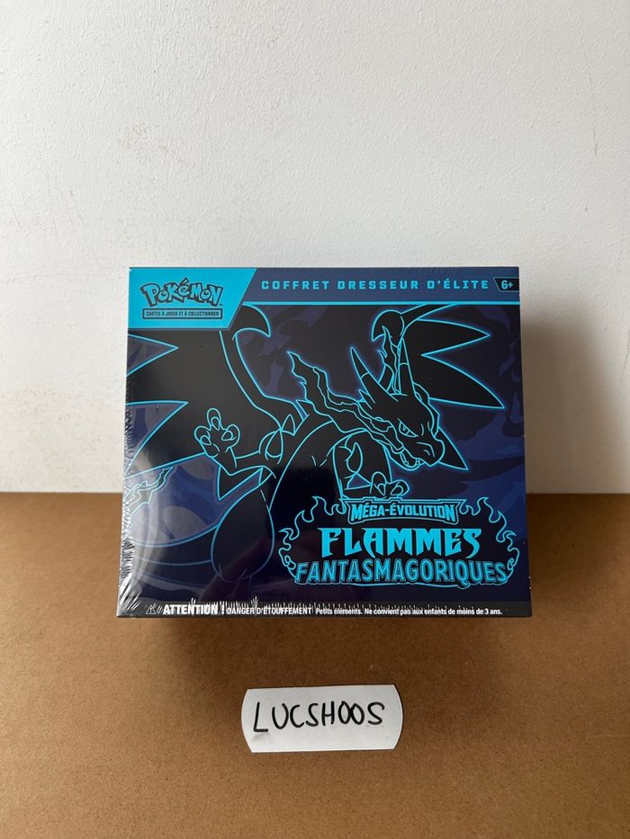 Coffret Dresseur D’Elite Pokémon Flammes Fantasmagoriques ME 2 ETB légèrement trouée (voir dernière photo) EXPÉDITION DOUBLE BOX SOUS 24H