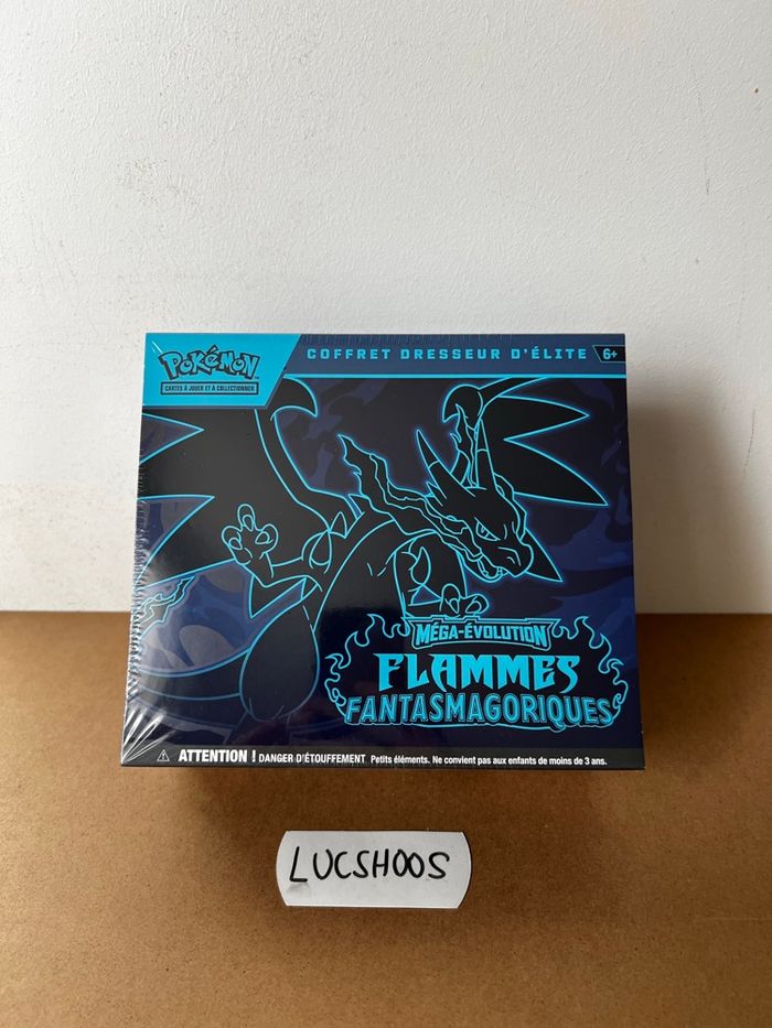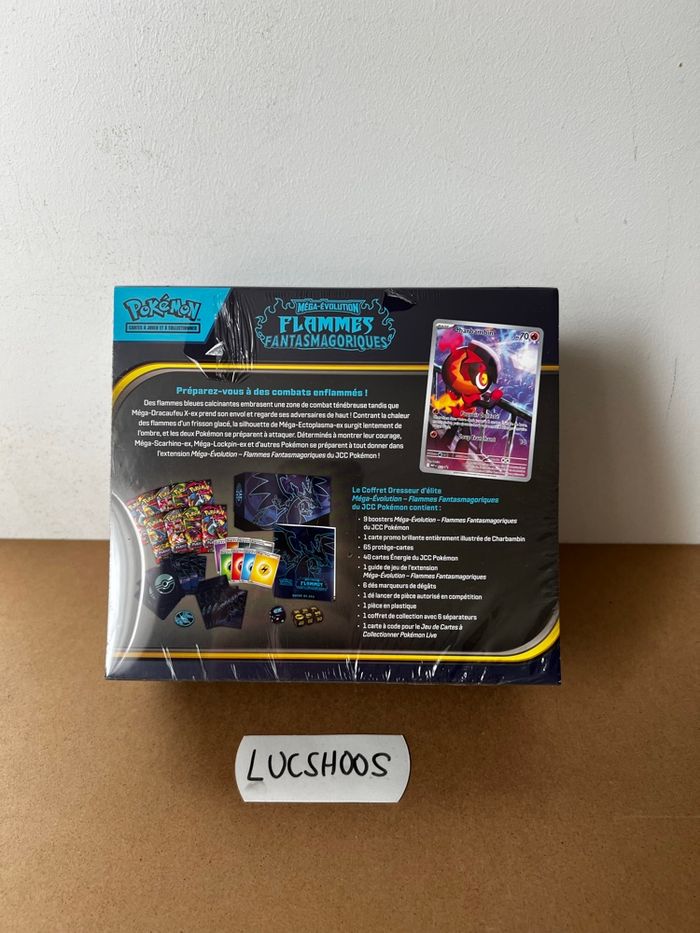 Coffret Dresseur D’Elite Pokémon Flammes Fantasmagoriques ME 2 ETB légèrement trouée (voir dernière photo) EXPÉDITION DOUBLE BOX SOUS 24H