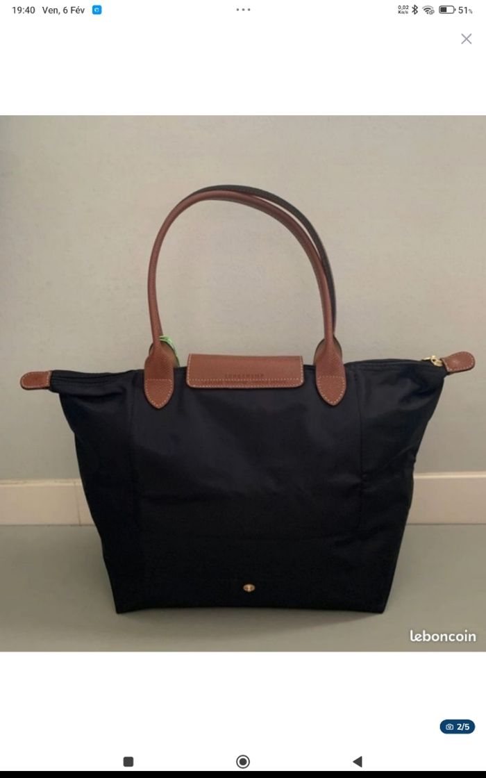 Sac cabas fourr-tout Longchamp le pliage noir et marron, neuf avec étiquette, idéal pour les cours, taille L, envoie rapide et soigné, copie d'excellentes qualités