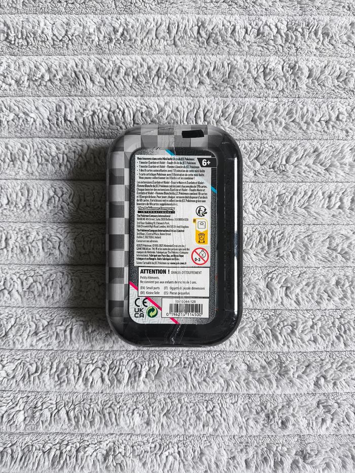 Découvrez la Mini Tin EV10.5 Miasmax & Gaulet, collector compact de l'extension Pokémon Écarlate & Violet – Foudre Noire & Flamme Blanche, hommage à la région d'Unys ! Édition française officielle, sortie juillet 2025. Contenu précis : 1 booster Foudre Noire . 1 booster Flamme Blanche .