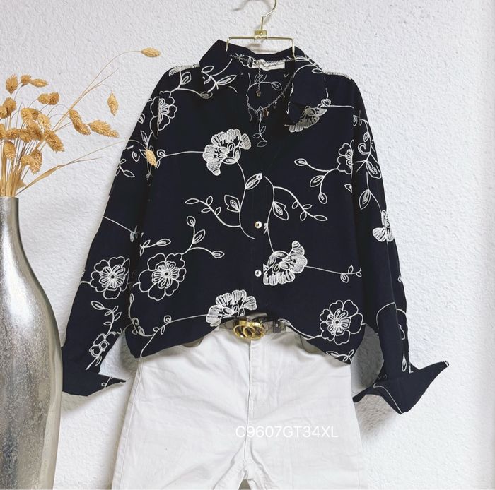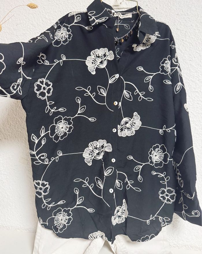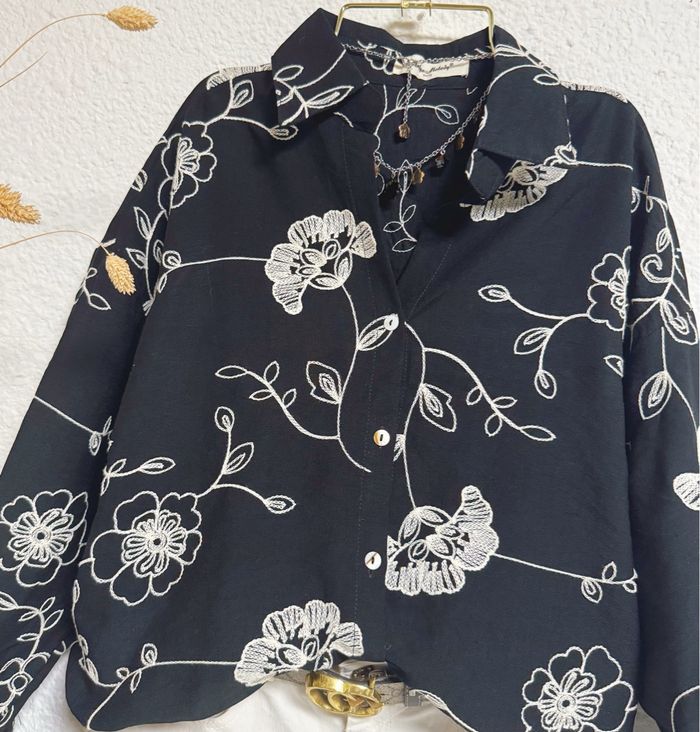 Blouse noire broderie beige taille 4XL 🌸 - photo numéro 1