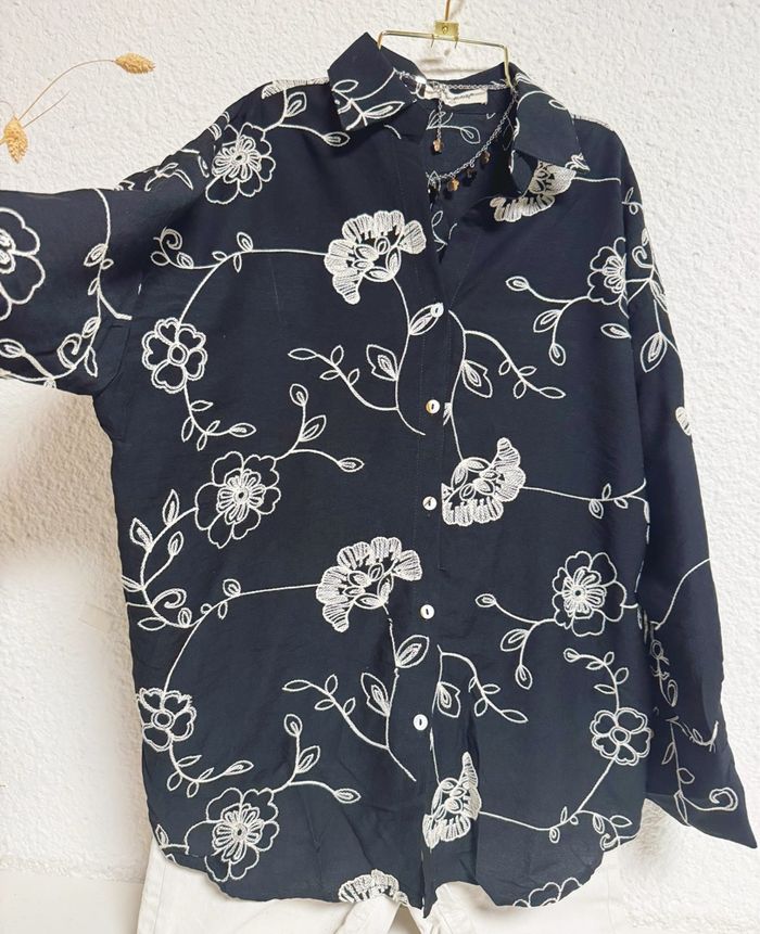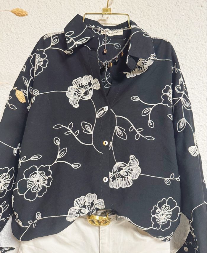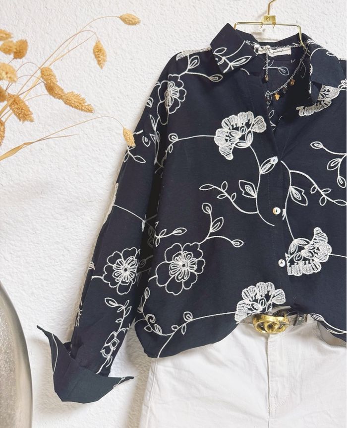 Blouse noire broderie beige taille XXXL 🌸 - photo numéro 1