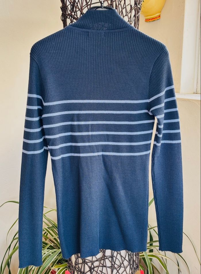 Pull bleu marine, col montant à rayures contrastées Damart T38/40 - photo numéro 1