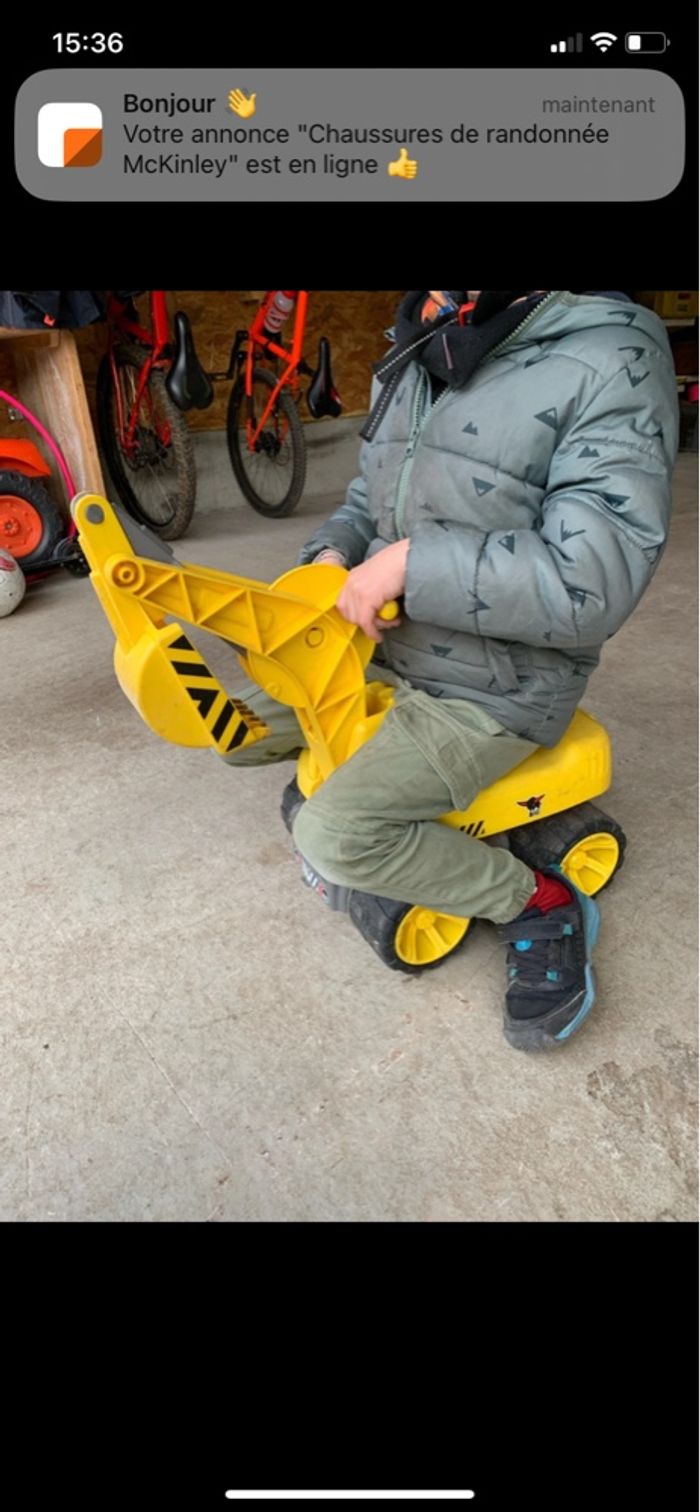 Pelleteuse pour enfants pour s’asseoir dessus. A bien vécu mais rien de cassé.